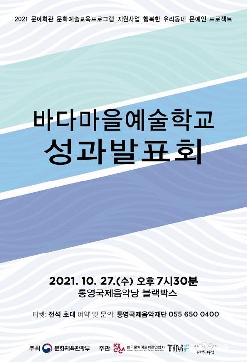 [È£ÅÚ°ü±¤·¹Á®½Å¹®´º½º=¼­È¿°æ ±âÀÚ] Å뿵±¹Á¦À½¾ÇÀç´ÜÀÌ 27ÀÏ ¿ÀÈÄ 7½Ã 30ºÐ Å뿵±¹Á¦À½¾Ç´ç ºí·¢¹Ú½º¿¡¼­ '¹Ù´Ù¸¶À» ¿¹¼úÇб³ ¼º°ú¹ßǥȸ'¸¦ ¿±´Ï´Ù.