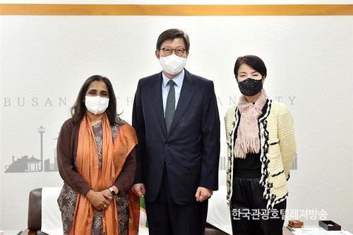 ¹Ú ½ÃÀåÀº ÁÖÇÑÀεµ´ë»ç¸¦ ¸¸³ª Äڷγª19 À§±â ¼Ó¿¡µµ ºÎ»êÀ» ¹æ¹®ÇØ ÁֽŠ°Í¿¡ ´ëÇØ °¨»ç Àλ縦 ÀüÇϸç, ¡°ºÎ»ê½Ã´Â Æò¼Ò Àεµ¿¡ ¸¹Àº °ü½ÉÀ» °®°í ÀÖÀ¸¸ç, ±ä¹ÐÈ÷ Çù·ÂÇϱ⸦ Èñ¸ÁÇϰí ÀÖ´Ù¡±¸ç, ¡°Æ¯È÷, Àεµ´Â dzºÎÇÑ ÀÎÀûÀÚ¿øÀ» ¹ÙÅÁÀ¸·Î IT(Á¤º¸Åë½Å) »ê¾÷ÀÇ ¼±Áø±¹À̹ǷÎ, Á¤º¸Åë½Å ºÐ¾ß¿¡¼ ºÎ»ê°ú Çù·ÂÇÒ ¼ö ÀÖ´Â ºÐ¾ß°¡ ¸¹À» °Í¡±À̶ó°í ¸»Çß½À´Ï´Ù.